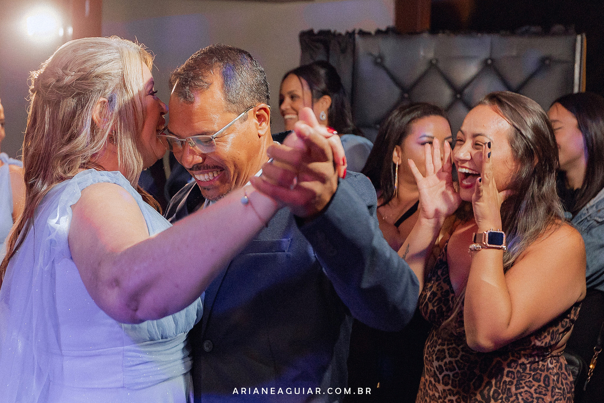 A recepção, cercada pela alegria de familiares e amigos, trouxe momentos de descontração e celebração. Foi uma noite que ficará para sempre no coração de quem teve o privilégio de presenciar esse marco na vida de Ângela e Rogério.