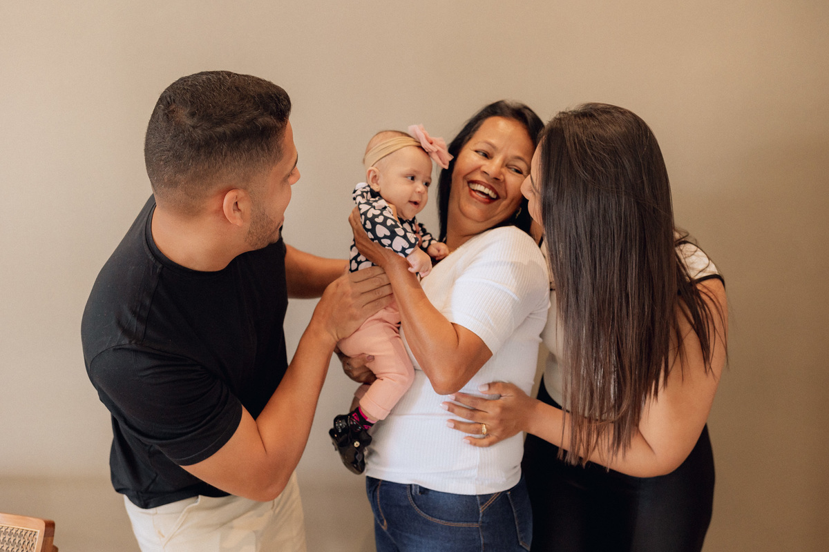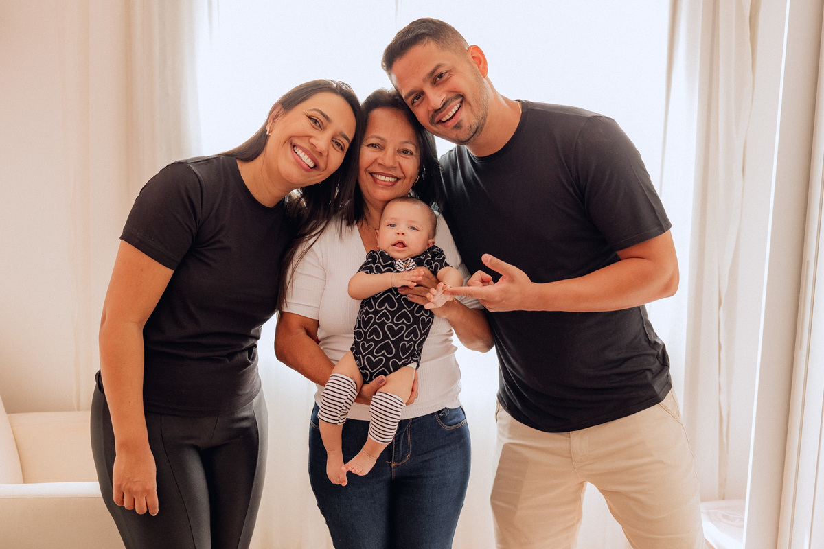 A vovó Vera, mãe de Keyla, também participou desse momento especial, trazendo ainda mais afeto para as fotos. Cada clique capturou a essência de uma família unida, onde o amor se manifesta nos pequenos gestos e sorrisos.
